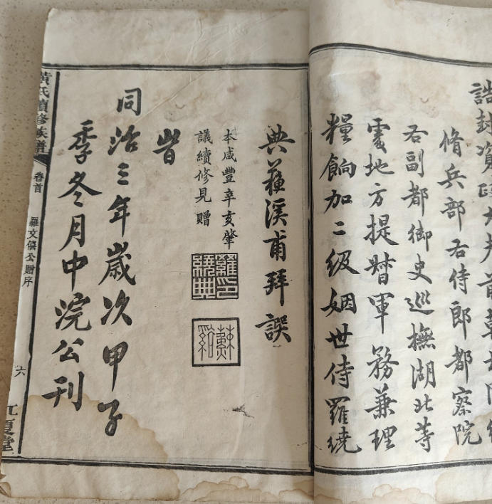 湖南安化县大福镇楚梅黄氏续修族谱(11卷,首一卷),江口在今大福镇富民村江中二组。又名大福黄氏、江口黄氏。大福镇,隶属于湖南省益阳市安化县,地处安化县东南部,东与长沙市宁乡市巷子口镇接壤,南与高明乡相连,西南与清塘铺镇为邻,西与仙溪镇,西北与长塘镇接壤,东北与桃江县松木塘镇毗邻。区域面积317.23平方千米,根据第七次人口普查数据,截至2020年11月1日零时,大福镇常住人口为66580人。宋熙宁五年(1072年),置安化县,大福地域属归化乡(镇),历元、明、清未变。民国时期,属安化县大东乡。2005年12月,撤并东山、新桥2乡和原大福镇,设立新的大福镇。2011年,大福镇下设和平、永久、沂滨3个居民委员会,建和、东山、石膏、东阳、中心、柳严、新安、黄皮、印石、白泥、西冲、官仓、新桥、大长、西马庄、梅溪、新梅、新寺、凤泉、柘木、江福、龙荣、木孔、大尧、富民、小尧、云雾、金树、大福坪、北兴、建炉、尹新、禾黄、石门、浮栗溪、孟家、张吴、木溪、合木、金鸡、苍湘、天罩山、文青、福欣、民富、文利、友谊、焦容等48个村民委员会。共20个居民小组、970个村民小组。