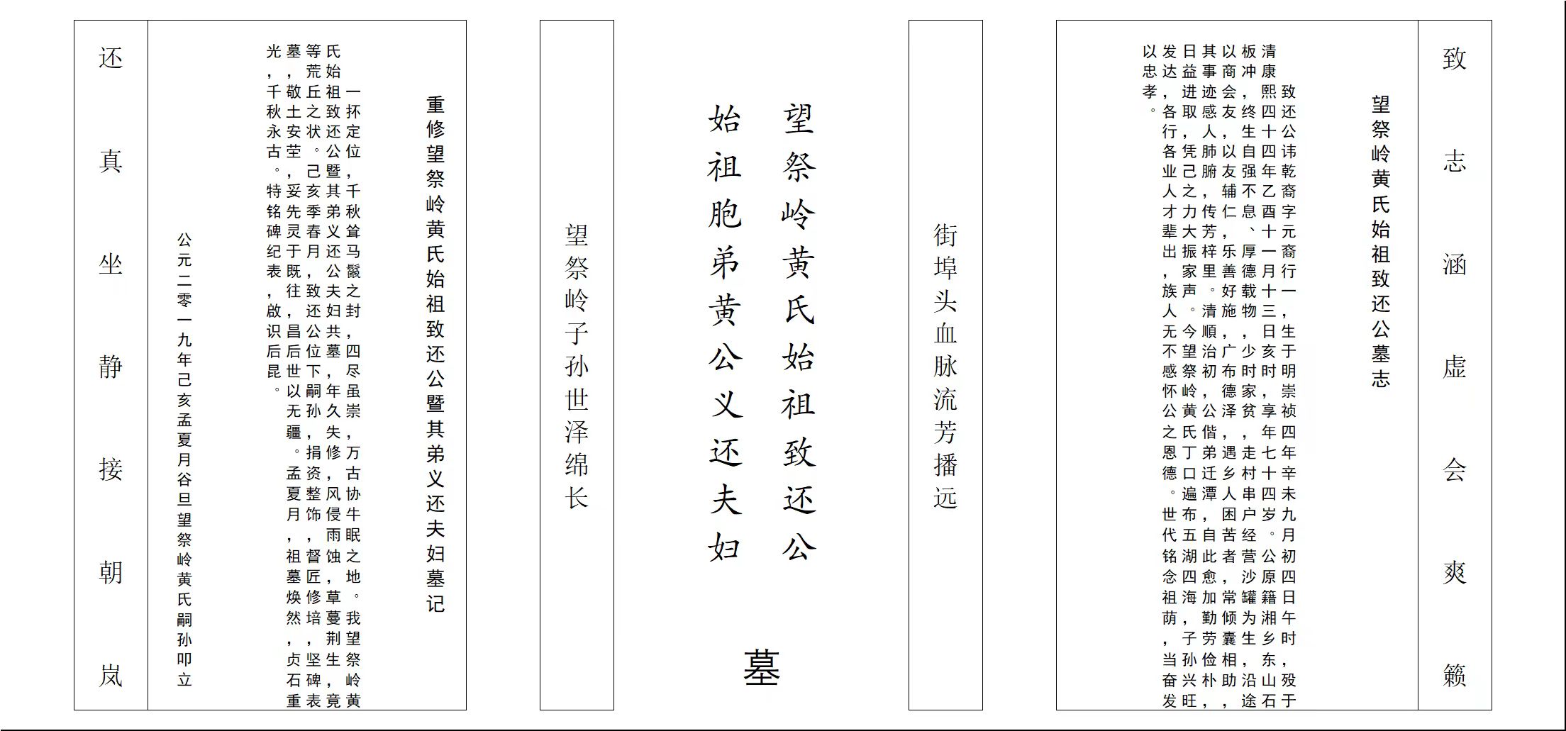 落款:望祭岭黄氏嗣孙 公元二〇一九年己亥孟夏月 叩立